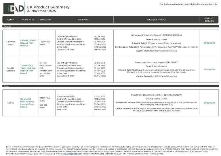 IDAD UK Product Summary – 07 November 2025
