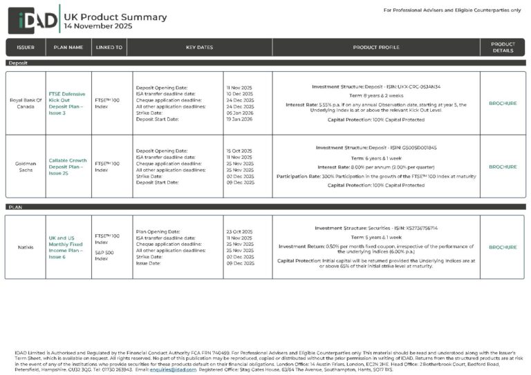 IDAD UK Product Summary – 14 November 2025