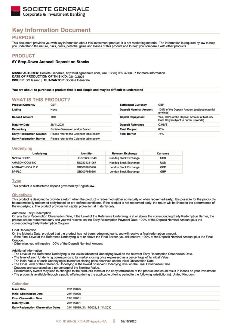 KID – Societe Generale Transatlantic Titans Kick Out Deposit Plan – Issue 1 (OJNBZ)
