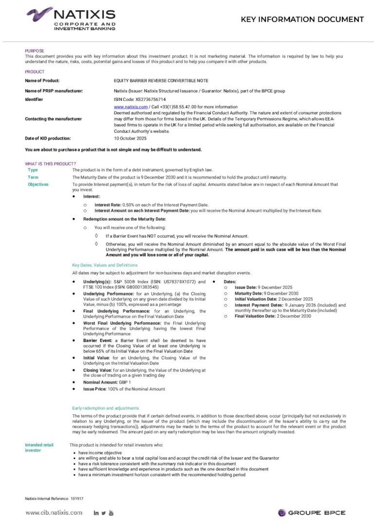 KID – Natixis UK & US Monthly Fixed Income Plan December 2025 (XS2736756714)